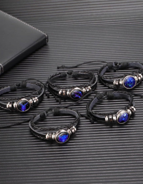 Adjustable Guardian Zodiac Constellation Pisces Bracelet Black Leather
